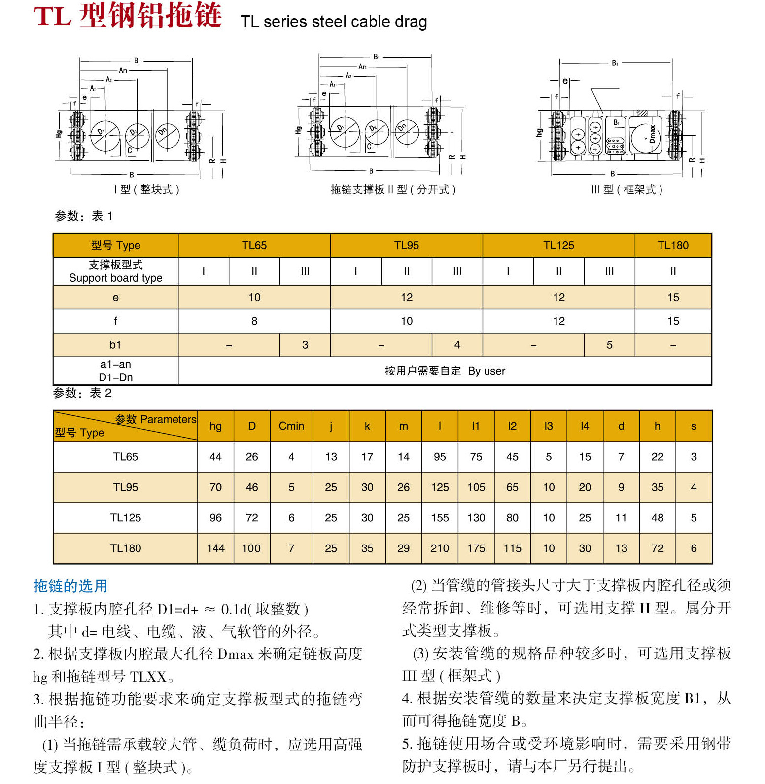 鋼制拖鏈選型方法:
