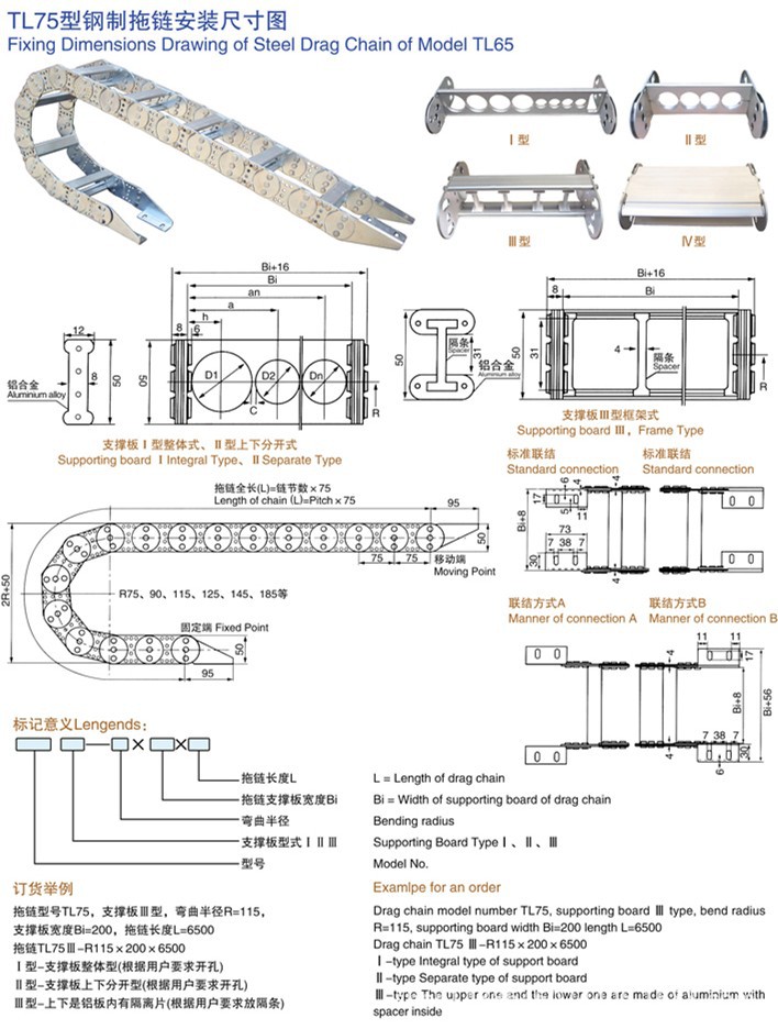 產品名稱 TL65鋼制拖鏈 型號 TL65 材質 碳鋼 不銹鋼 鋁合金