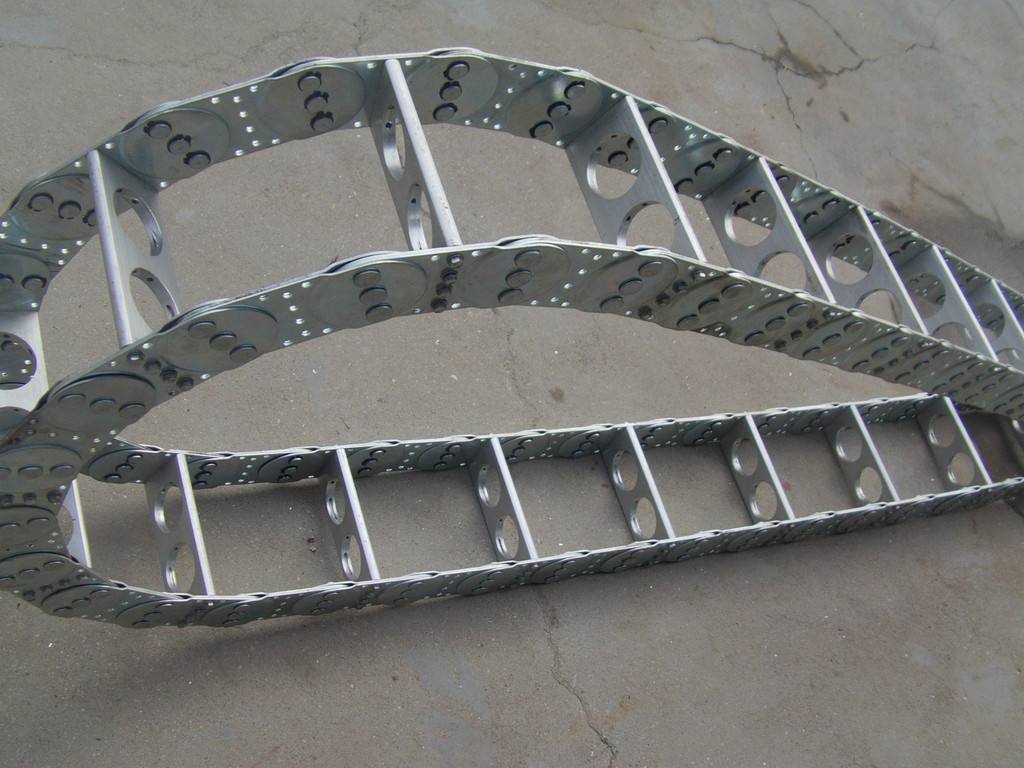 (1)鋼制拖鏈外形似坦克鏈,由眾多的單元鏈接組成,鏈接之間轉動自如。
