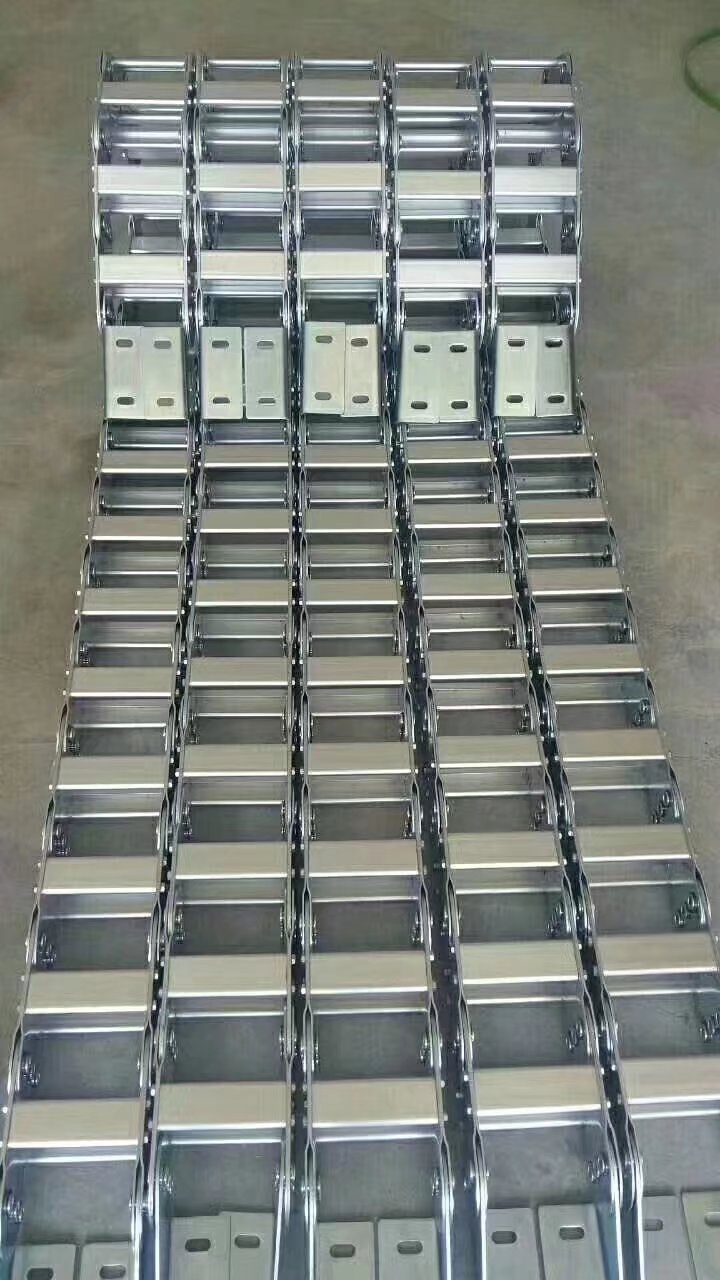 使電纜或橡膠管與拖鏈之間產生相對運動,不產生扭曲變形,鏈板經鍍鉻處理外形效果新穎,結構合理,靈巧強度高,