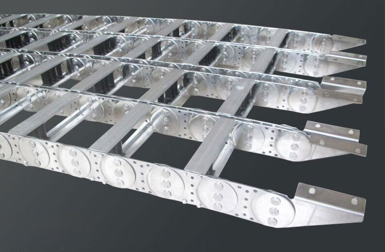 2.鋼鋁拖鏈拖鏈的支撐板寬度為 150mm 至 800mm, 孔與孔之間的間隔量為10mm.鏈板的高度也就是支撐板的高度,是由電纜最大直徑決定的.