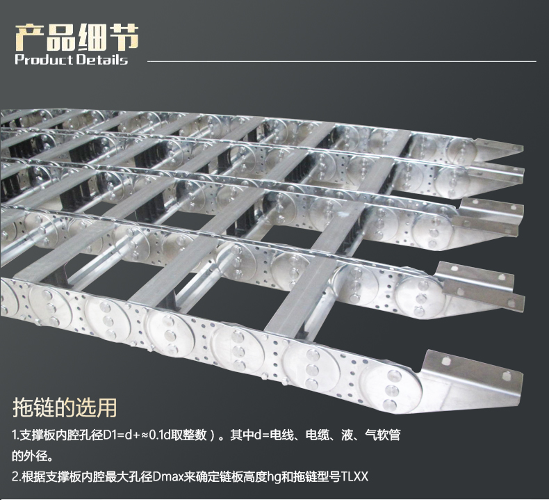 TL鋼制拖鏈:支撐板III型框架式,上下是鋁板