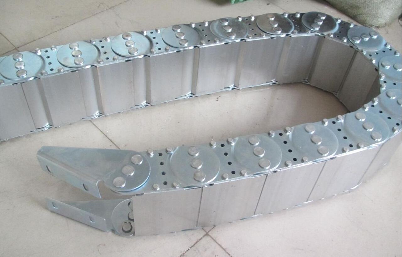 冷軋鋼和不銹鋼。拖鏈的型號、拖鏈的總寬、拖鏈的長、支撐板的型式、支撐板內置孔的大小、拖鏈的彎曲半徑