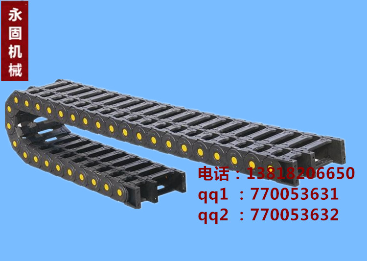 電纜拖鏈適用于數控機床、加工中心、自動化機械及生產線等各類機床、機器人、運輸機械、測量儀器、搬運裝置以及其它驅動控制作為電線、電纜液、氣軟管的防護裝置,電纜拖鏈能隨機床、機械設備移動部件協調地運行,可發揮安全保護和導向的能力,可延長被保護的電線、電纜、液、氣軟管的使用壽命,降低消耗,可大大改善機床、機械設備的電線、電纜、液、氣軟管分布零亂的狀況,電纜拖鏈使之整齊、規則地排列在一起,能增強機床、機械設備的整體藝術造型效果。