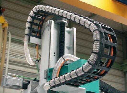拖鏈系統對自動化設備上的移動電纜和軟管進行引導和保護,應用范圍非常廣泛。