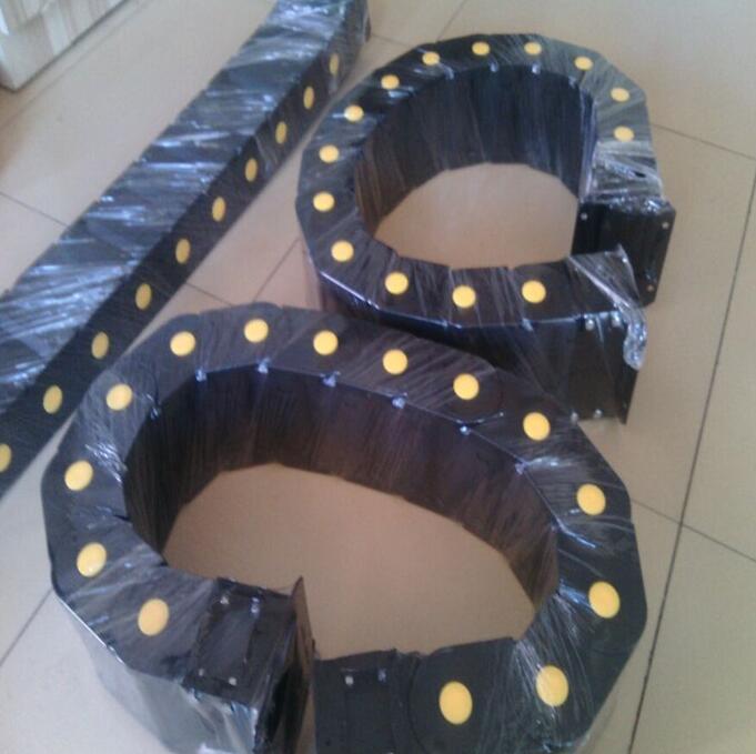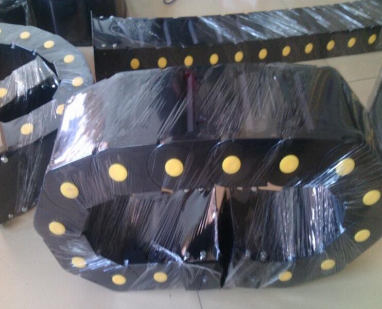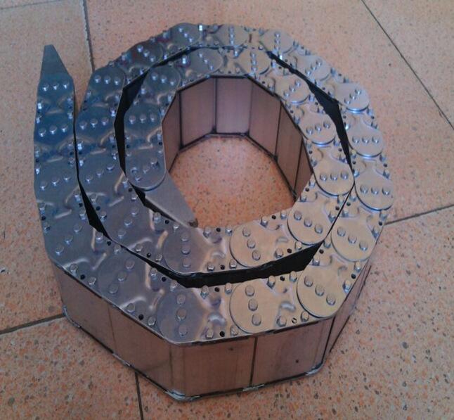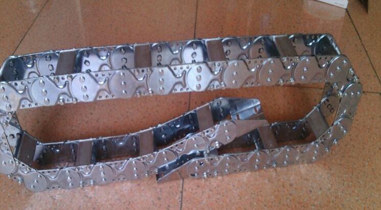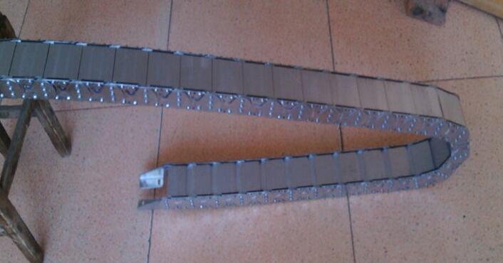 鋼鋁拖鏈一般應用在機床等機械鋼鋁拖鏈的主體是由鏈板(采用優質鋼板經淬火后再拋光鍍鉻/鍍鋅/噴塑處理)、支撐板(擠拉鋁合金)、軸銷(合金鋼)等部件組成.使電纜或橡膠管與拖鏈之間不產生扭曲變形,鏈板經鍍鉻處理外形效果新穎,結構合理,靈巧強度高,該產品鋼性好,不變形.安裝方便,使用可靠,易拆裝,不下垂.由于本產品外形精美,可在較大程度上增強機床設備的整體藝術美觀效果,增強我國機床,機械設備在國際市場的競爭能力。的電纜、油管、氣管、水管、風管上,對電纜、油管、氣管、水管、風管起牽引和保護作用。按連接板和樣式分為幾個類別,每個類品又有多個型號!鋼鋁拖鏈(不銹鋼鋁拖鏈、全自動鋼鋁拖鏈、新型鋼鋁拖鏈、半封閉鋼鋁拖鏈)